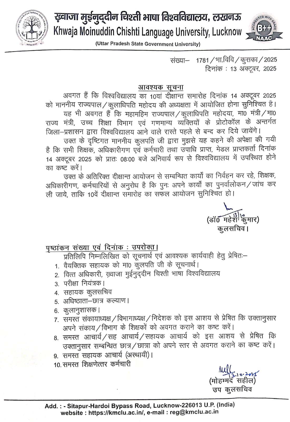 Notice Regarding Duties of Staff in Convocation 2025 |