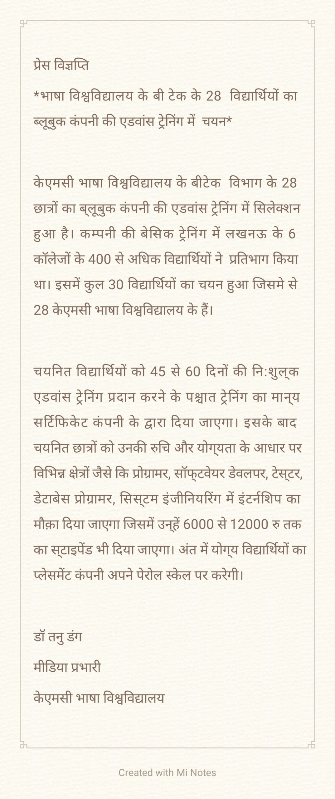 Press Release 7.10.2022 Placement of 11 Students | View/Download | |