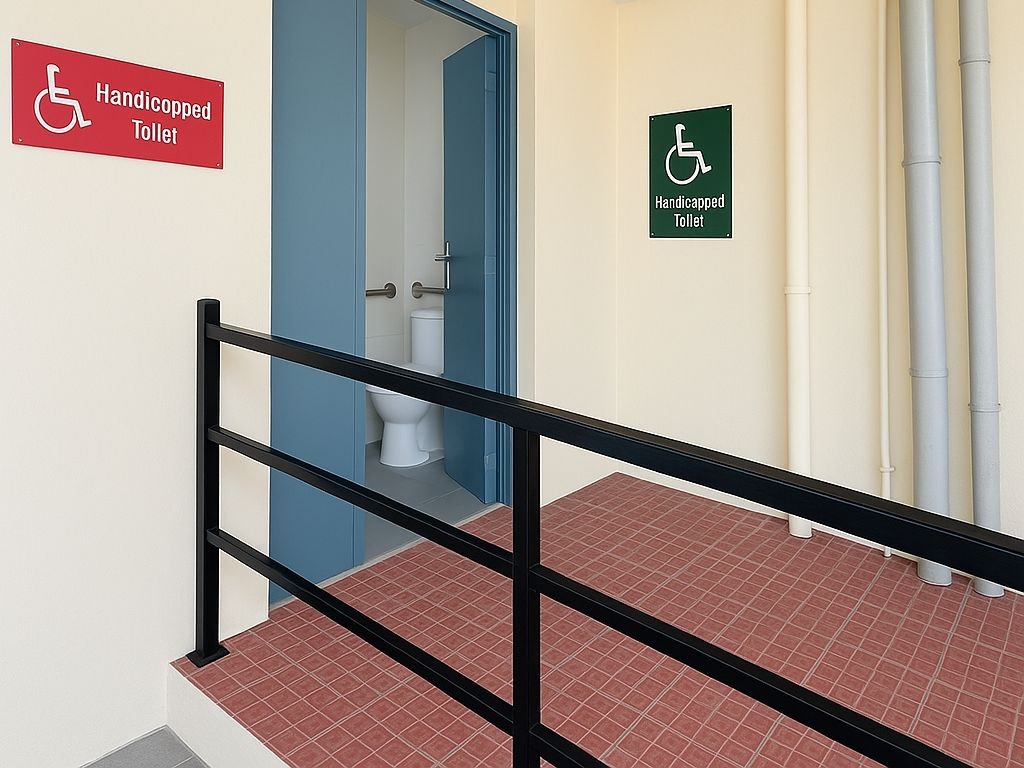 Multi-story buildings are fitted with elevators, making upper floors accessible to everyone.Accessible Washrooms